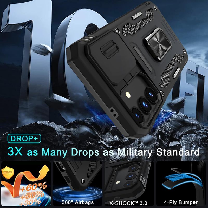 DEERLAMN Funda para Samsung Galaxy S23 FE con cubierta deslizante para cámara + protector de