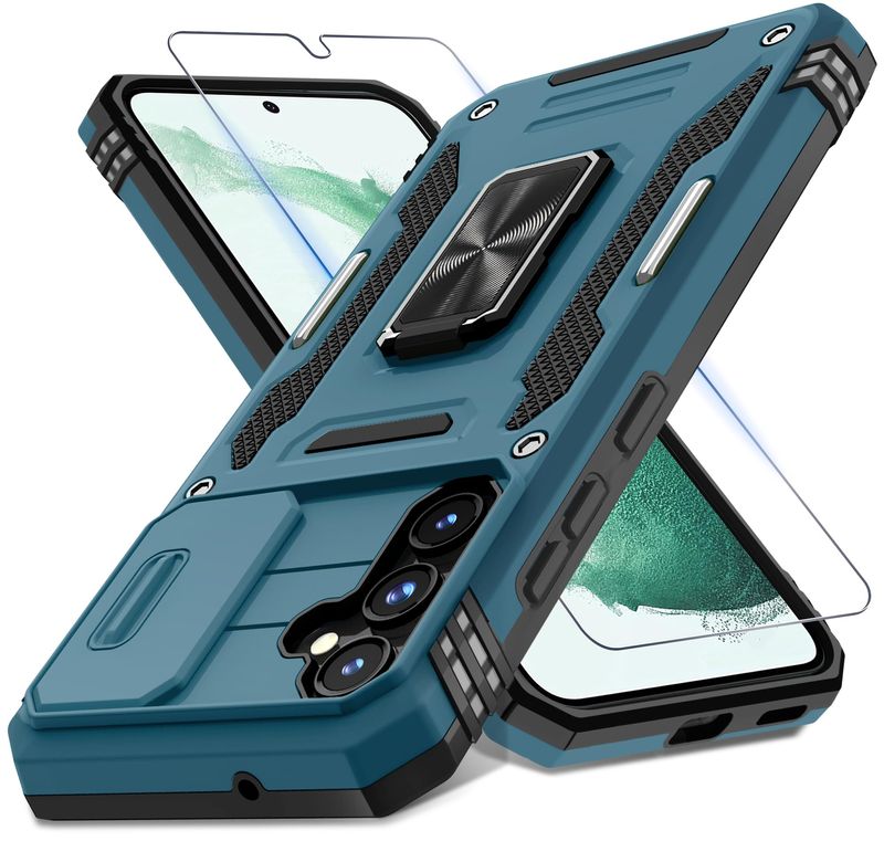 DEERLAMN Funda para Samsung Galaxy S23 FE con cubierta deslizante para cámara + protector de