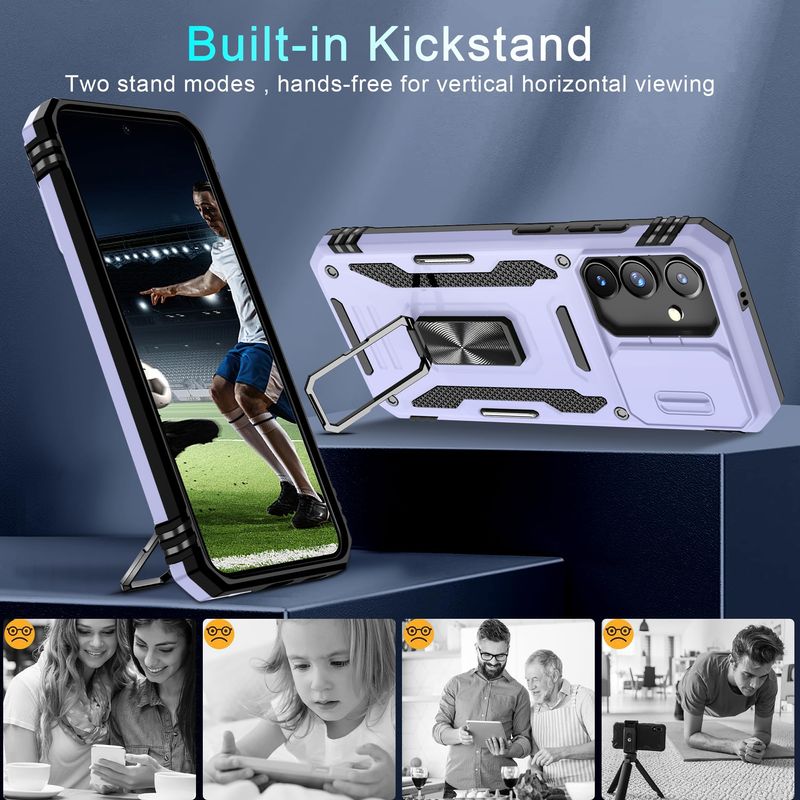 ???? Funda Armor con cubierta deslizante para cámara especialmente diseñada para Samsung Galaxy S23 FE 5G-6.4 pulgadas lanzado en 2023. No apto para otros dispositivos. El corte preciso se adapta a cada botón, cámara, altavoces y puertos con precisión, fácil de presionar y acceder. ?? Aviso: debido al anillo de metal en la parte posterior, esta funda no funcionará con función de carga inalámbrica.