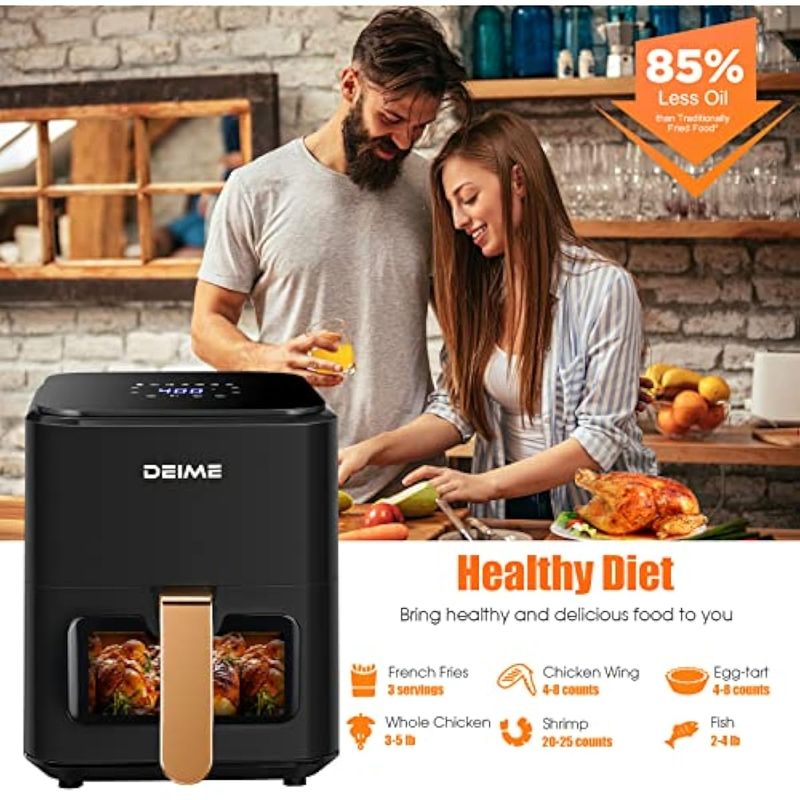 DEIME Freidora de aire caliente sin aceite de 4.2 cuartos de galón, olla saludable de 1200 W, horno