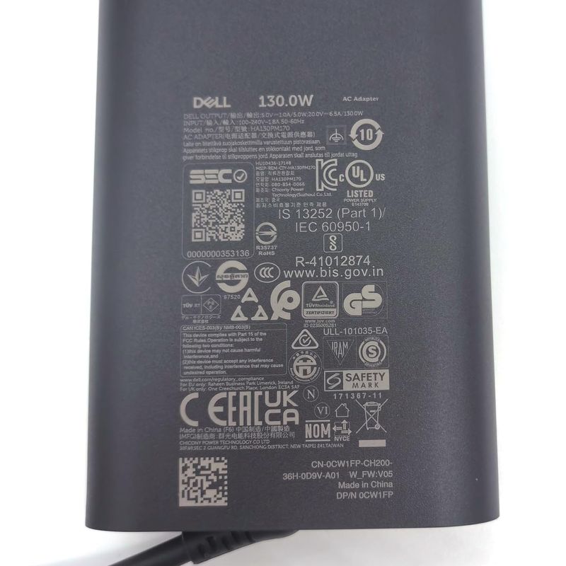 Dell Cargador para portátil GAN 130W USB C Tipo C Adaptador de CA, XPS 15 9520 9530 XPS 17 9720 9730