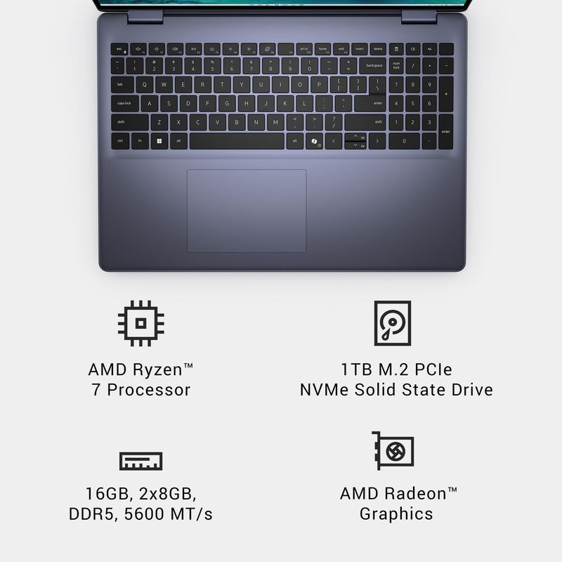 Dell Laptop Inspiron 5645 - Pantalla 16.0 16:10 FHD+ (1920 x 1200), AMD Ryzen 7-8840U, 16 GB DDR5