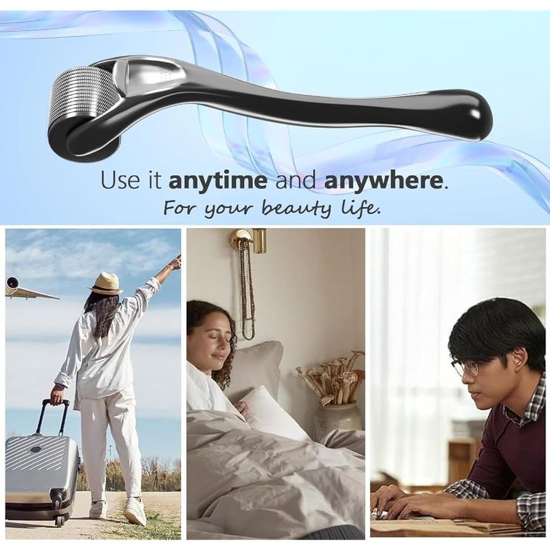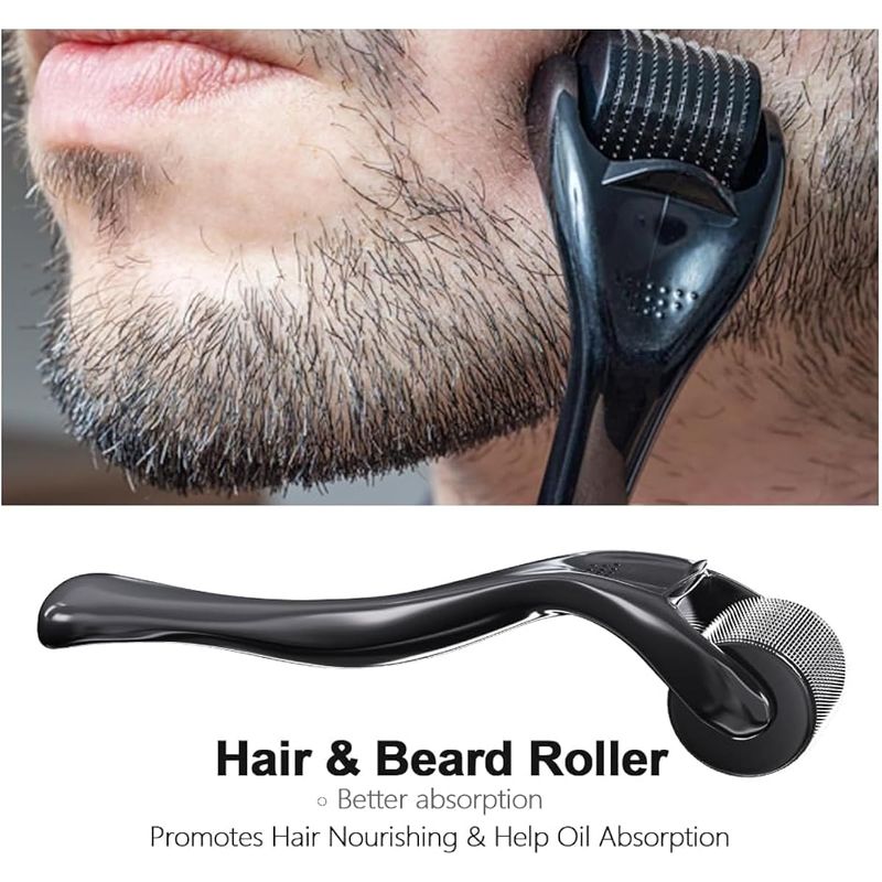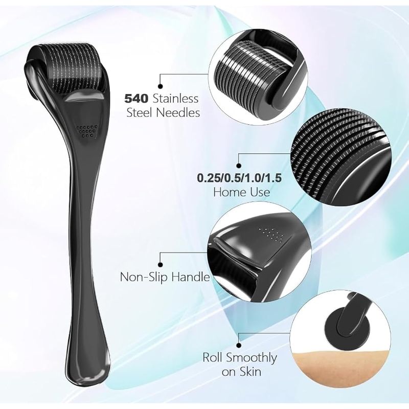DERMA ROLLER - RODILLO PARA BARBA, MICROAGUJAS, MICROAGUJAS, RODILLO FACIAL DE ACERO INOXIDABLE 540, RODILLO PROFESIONAL PARA BARBA, BARBA FACIAL, CARA, 540, USO DOMéSTICO CON ESTUCHE DE