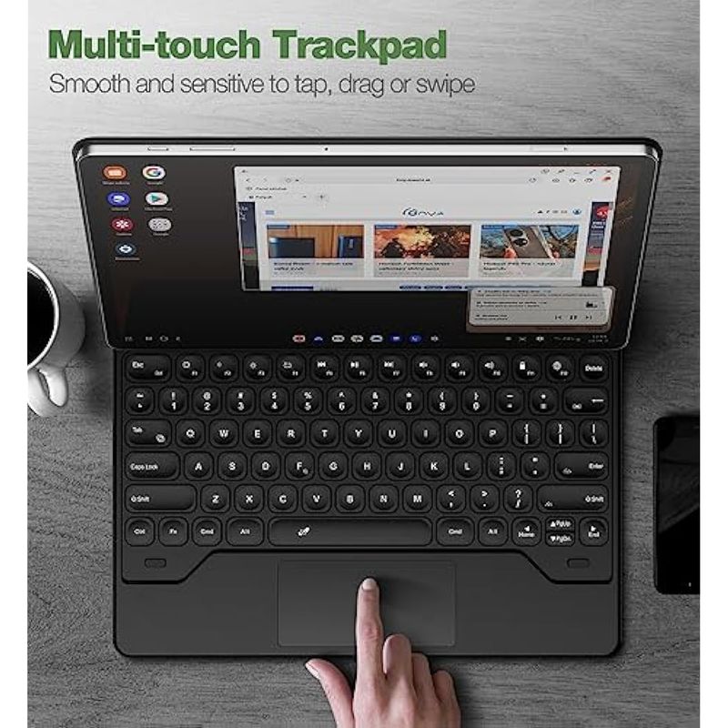 Trackpad de alta precisión: la funda del teclado está construida con un trackpad inteligente preciso y confiable que admite gestos con varios dedos. Navega con precisión por tu tablet de una manera completamente nueva con controles de múltiples gestos, como toque, pellizcar, desplazar, deslizar y más, realizando perfectamente las funciones de un mouse y disfruta de una excelente experiencia de computadora portátil. Edite documentos, navegue por la web y cree presentaciones con una velocidad inigualable, lo que le brinda una alta productividad.