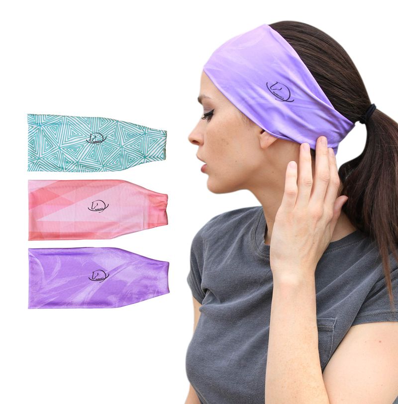 Duradero: mantiene la elasticidad y la forma. Lavar con agua tibia y jabón, se seca rápidamente para su uso día tras día. Específicamente diseñado para estirarse como una envoltura para la cabeza que es cómoda y mantendrá los auriculares en su lugar cuando entrenes o montas tu bicicleta o entrenamiento cruzado en el gimnasio. La forma de la banda te permite meter el cabello en la parte posterior o colocarlo suavemente y elegantemente debajo de una cola de caballo.