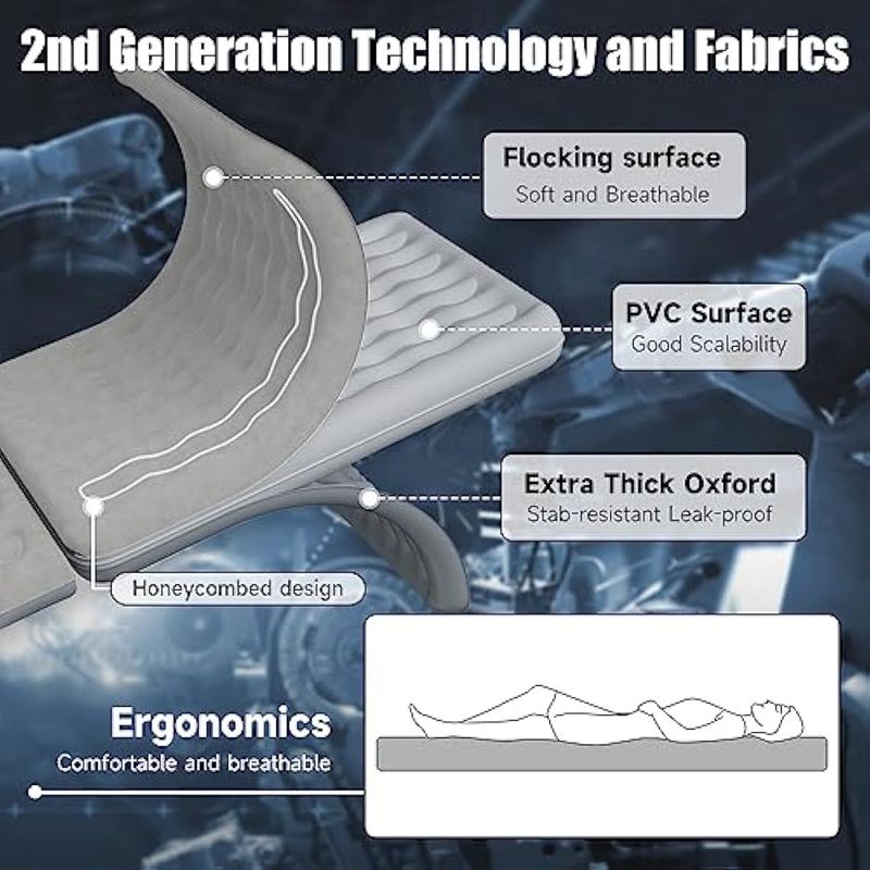 ?????Excelente capacidad de peso?Este colchón de aire para campamento para automóvil tiene una capacidad de peso de hasta 600 libras, con capacidad para 2 a 3 adultos simultáneamente. Tu familia duerme en el colchón y disfruta del tiempo aburrido en la carretera. Utiliza la nueva tecnología de unión para hacer que nuestra cama de aire para automóvil sea a prueba de fugas, impermeable, resistente al sudor, fácil de limpiar. Mientras tanto, también es una cama de tienda de campaña