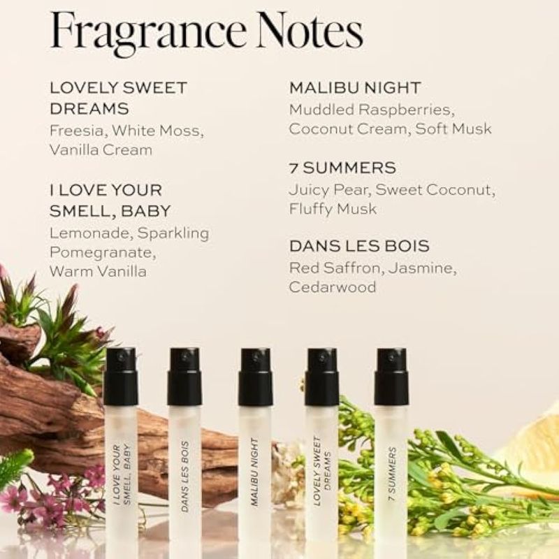 DIME Muestra de perfume de belleza, hipoalergénica, limpia, Eau de Toilette para mujer (juego de 5,