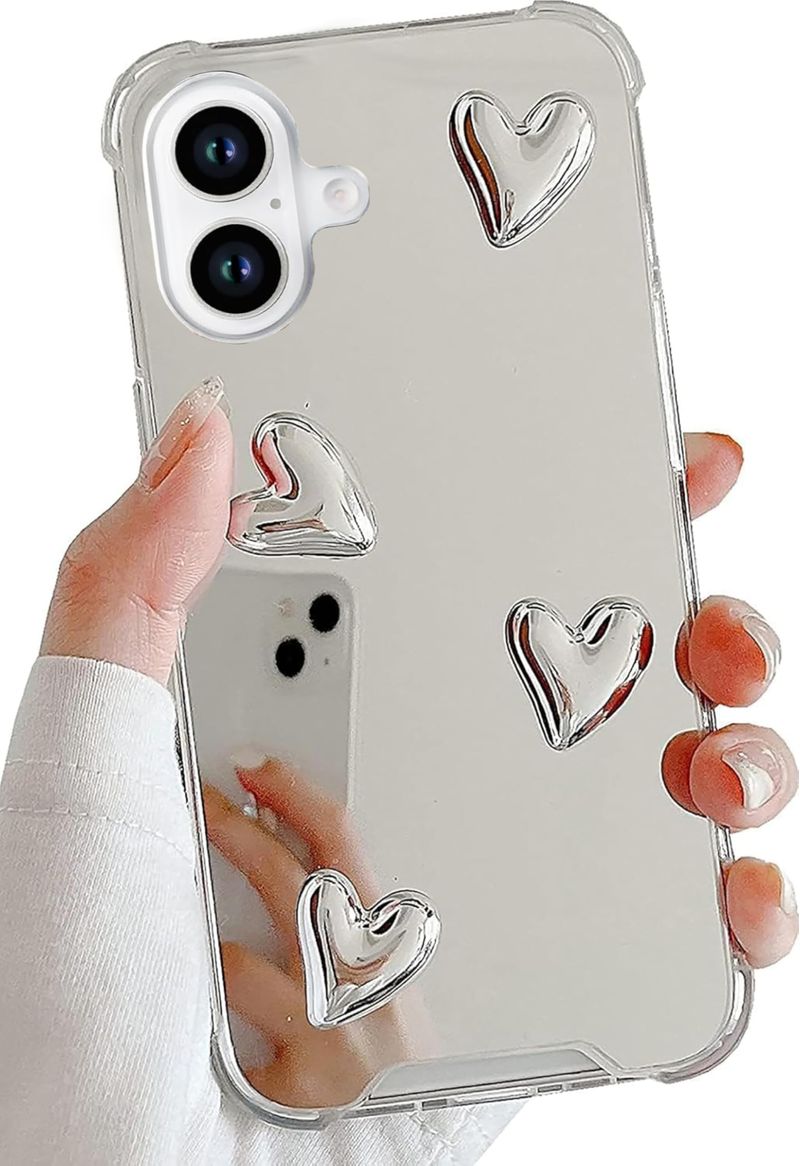 DIMEIYA FUNDA COMPATIBLE CON IPHONE 14 PRO MAX, ESPEJO PLATEADO PARA ADULTOS MAYORES, LINDO CORAZóN, SILICONA SUAVE, TRANSPARENTE, ESPEJO DE MAQUILLAJE, PARA MUJERES Y NIñAS, A PRUEBA DE GOLPES, FUNDA PROTECTORA PARA IPHONE 14 PRO MAX