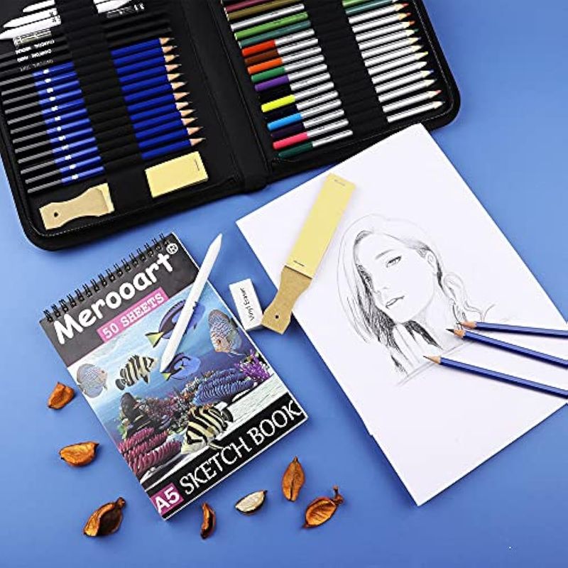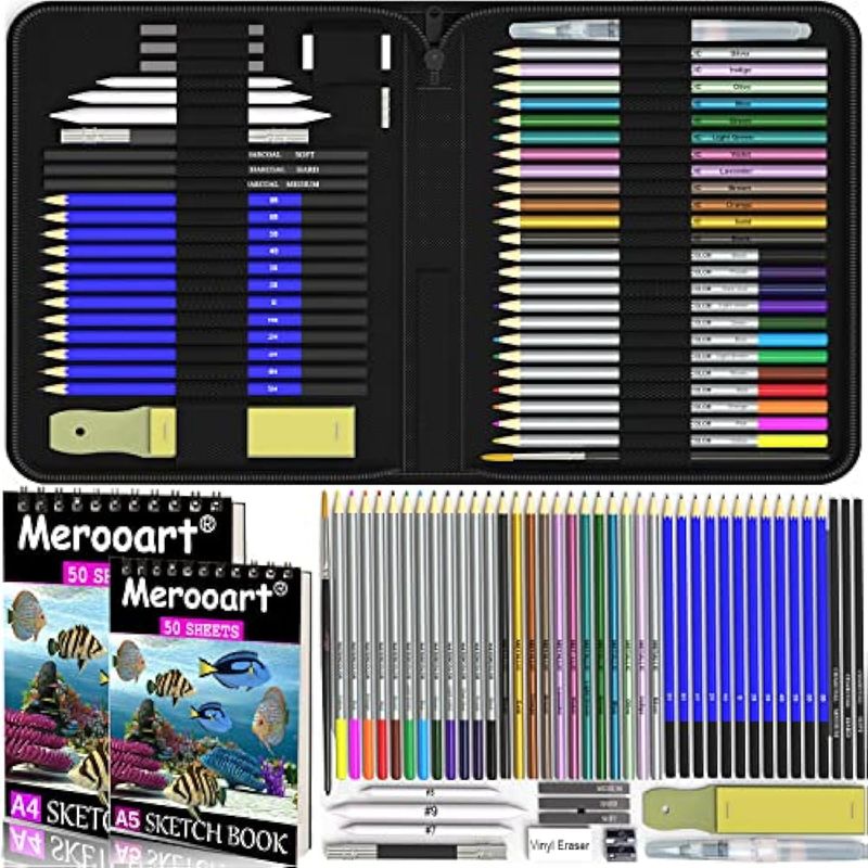 DIPAWS Paquete de 54 kits de dibujo para dibujar, suministros de arte profesional con 2 cuadernos de