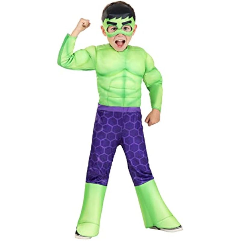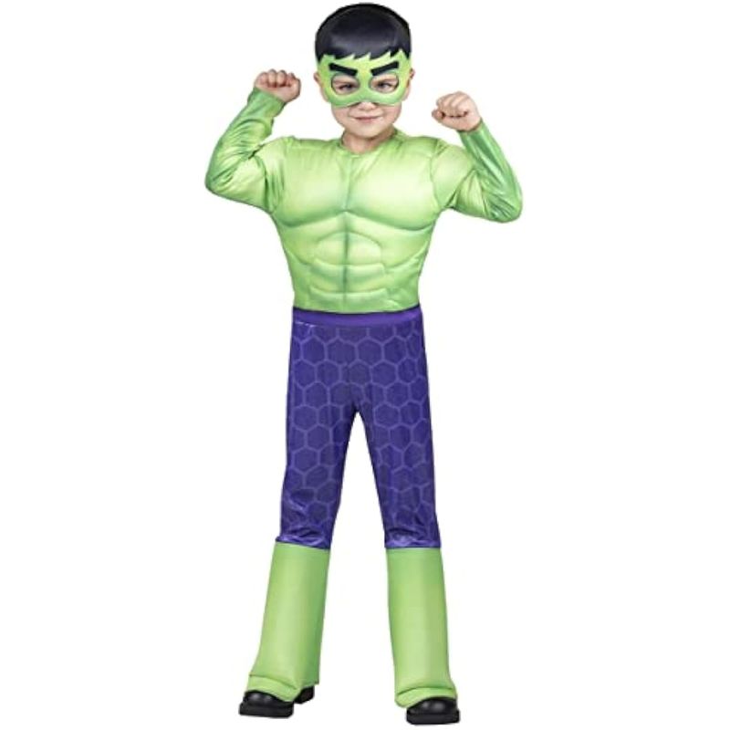 DISFRAZ OFICIAL DE LOS VENGADORES DE MARVEL PARA HALLOWEEN, OVEROL ACOLCHADO DE ALTA CALIDAD Y MáSCARA DE TELA (3T-4T)