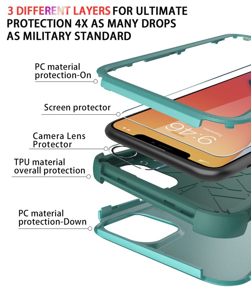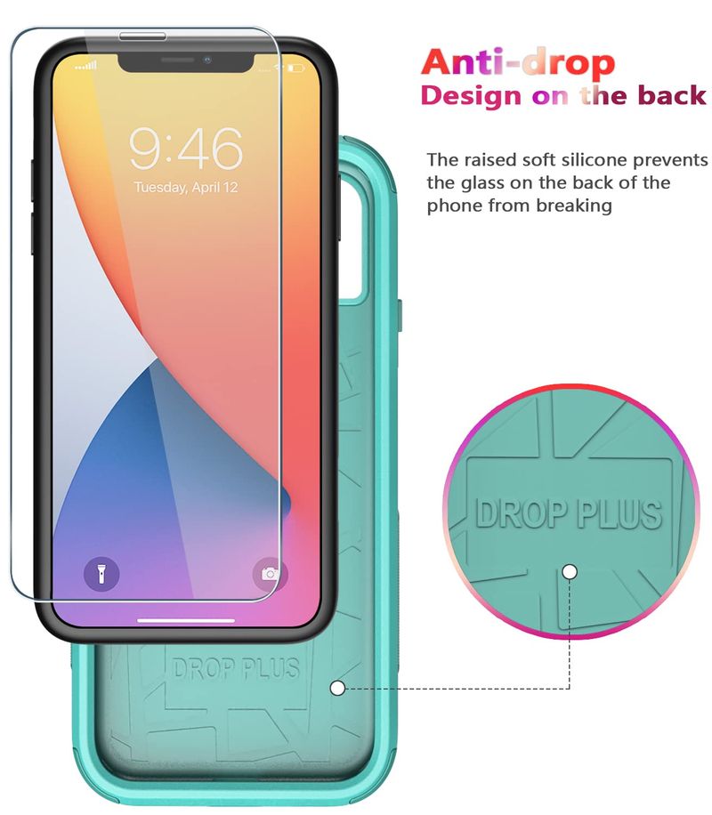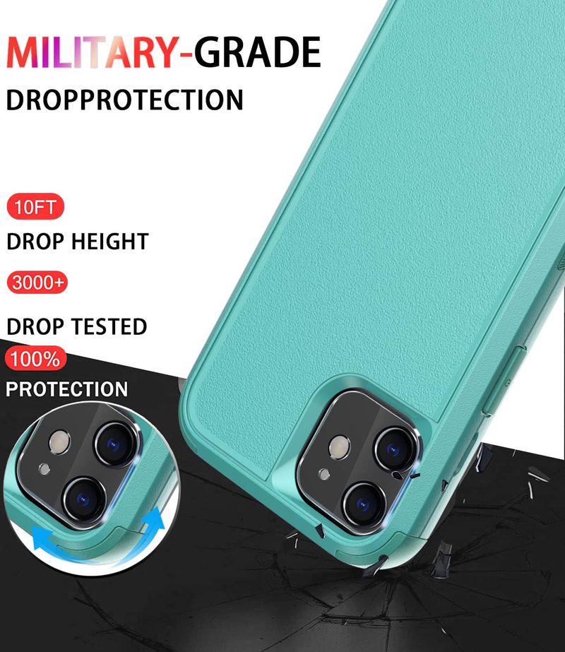 Diverbox - Funda para iPhone 11 a prueba de golpes y caídas, pantalla de vidrio templado + protector