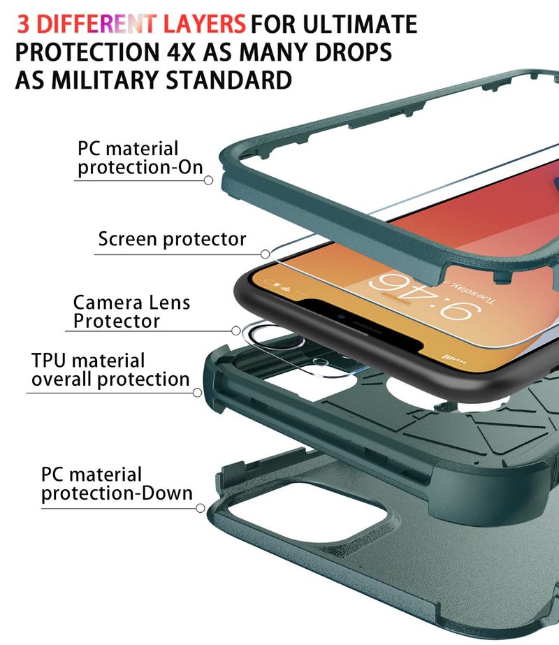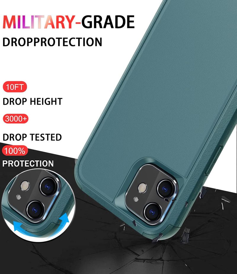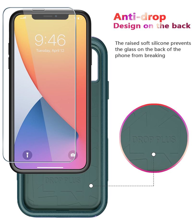 Diverbox - Funda para iPhone 11 a prueba de golpes y caídas, pantalla de vidrio templado + protector