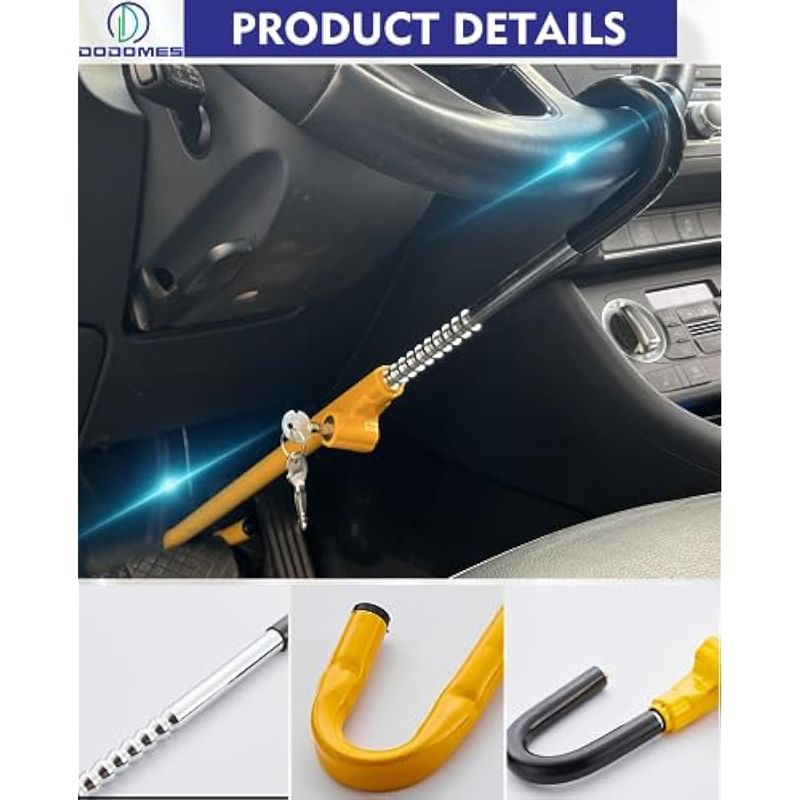 Resistente y duradero: el bloqueo del volante está hecho de acero resistente que nunca se oxida. Es resistente a los ataques de aserrado, palanca y martilleo para una fuerte resistencia duradera.