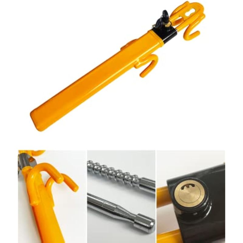 DODOMES CERRADURA PARA VOLANTE ANTIRROBO Y RESISTENTE, DISPOSITIVO SEGURO PARA AUTOMóVIL, ABRAZADERA DE LONGITUD AJUSTABLE, CERRADURAS DE DOBLE GANCHO, AJUSTE UNIVERSAL (AMARILLO)