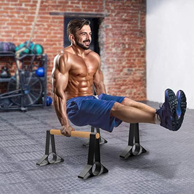 DOLIBEST PUSH UP BAR, 12'' HIGH PARALLETTES BARS WITH WOODEN HANDLES, STABLE AND COMFORTABLE CALISTHENICS EQUIPMENT, SUITABLE FOR HANDSTAND, L-SIT, DIP BAR, STRENGTH TRAINING FOR INDOOR OUTDOOR USE?600LB?