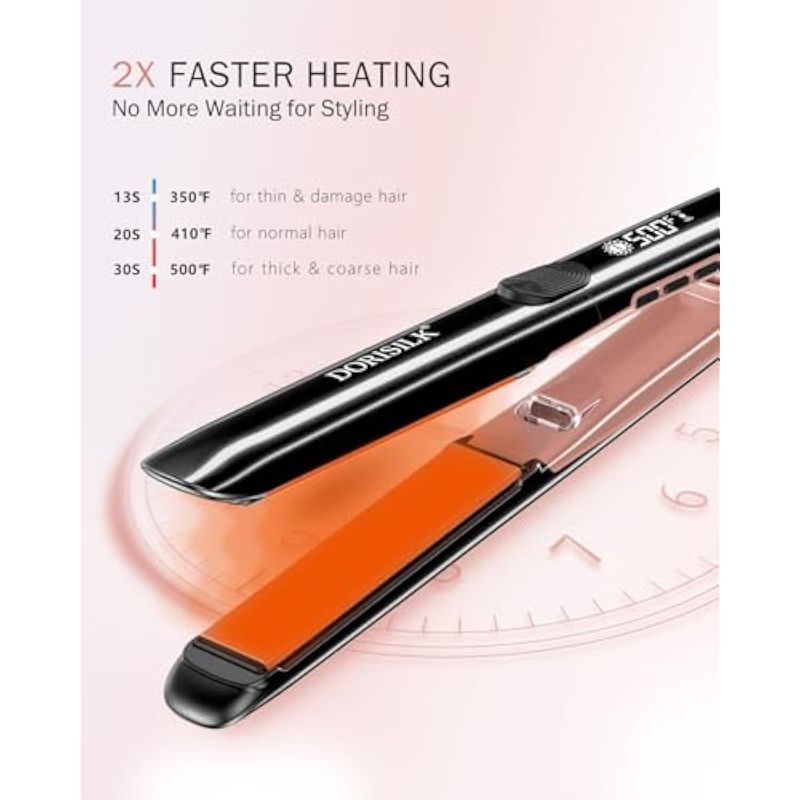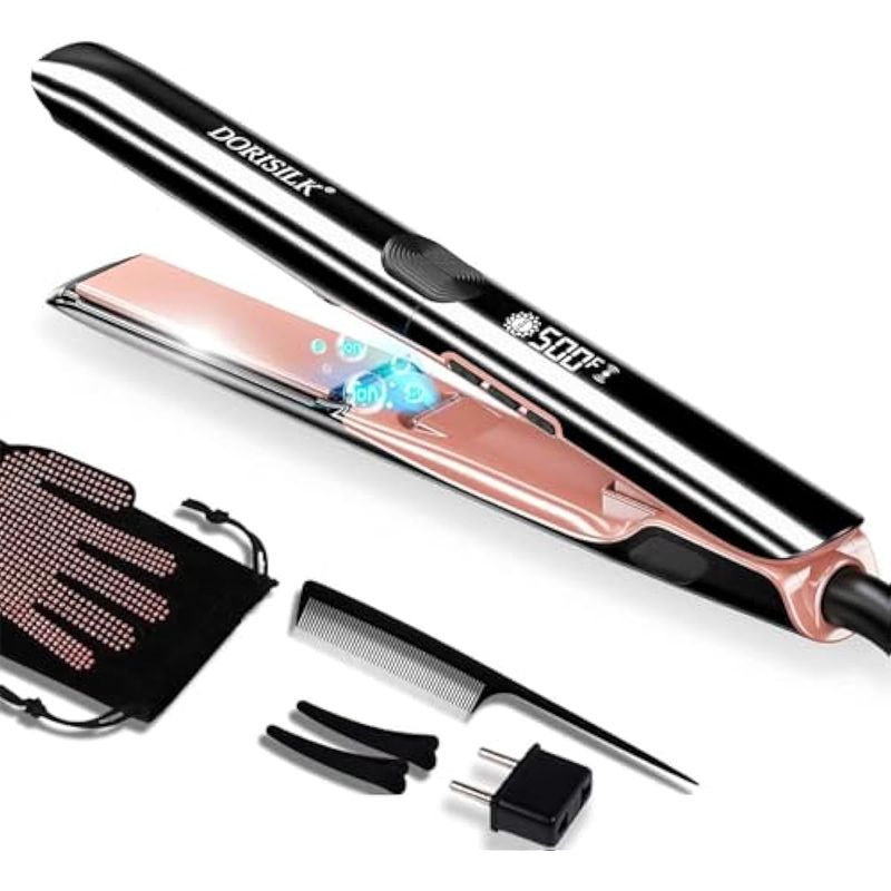 DORISILK PLANCHA DE PELO PROFESIONAL DE ALTA TEMPERATURA DE 500 GRADOS, PLANCHA PLANA DE CERáMICA DE CALENTAMIENTO RáPIDO DE 30 SEGUNDOS, ALISADOR Y RIZADOR DE PELO 2 EN 1, PLANCHA PLANA DE PLASMA SIN