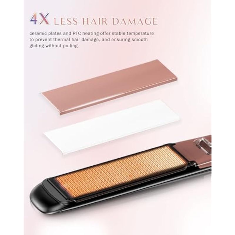 Plancha plana de doble voltaje para elaborar una perfección suave y sedosa y rizos de ensueño. Nuestra plancha alisadora de cabello, con una placa flotante de 1 pulgada, se transforma sin esfuerzo entre alisar y esculpir rizos para un estilo versátil.