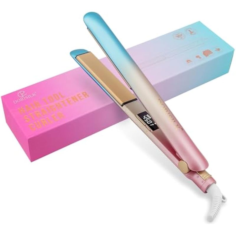 DORISILK Plancha plana colorida de 450 grados, alisador y rizador de pelo de cerámica 2 en 1,