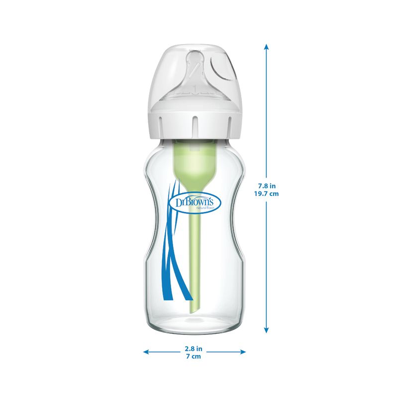 Dr. Brown's Natural Flow - Biberones de vidrio anticólicos y cuello ancho de 9 oz/9.1 fl oz, con