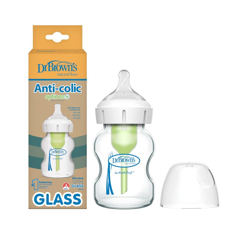 BEBES Y NIÑOSLACTANCIADr. Brown's Natural Flow - Biberones de vidrio anticólicos y cuello ancho de 9 oz/9.1 fl oz, con
