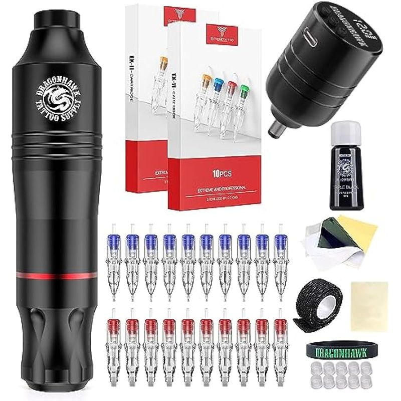 Dragonhawk Kit de máquina de tatuaje de cartucho inalámbrico, máquina de tatuaje rotativa, aguja de