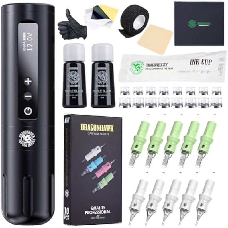 Dragonhawk Kit de pistola de tatuaje inalámbrico Pro L2 máquina de tatuaje pluma 5000mAh batería