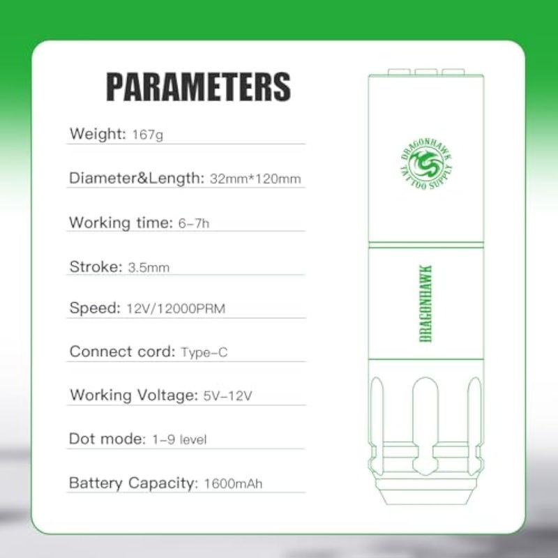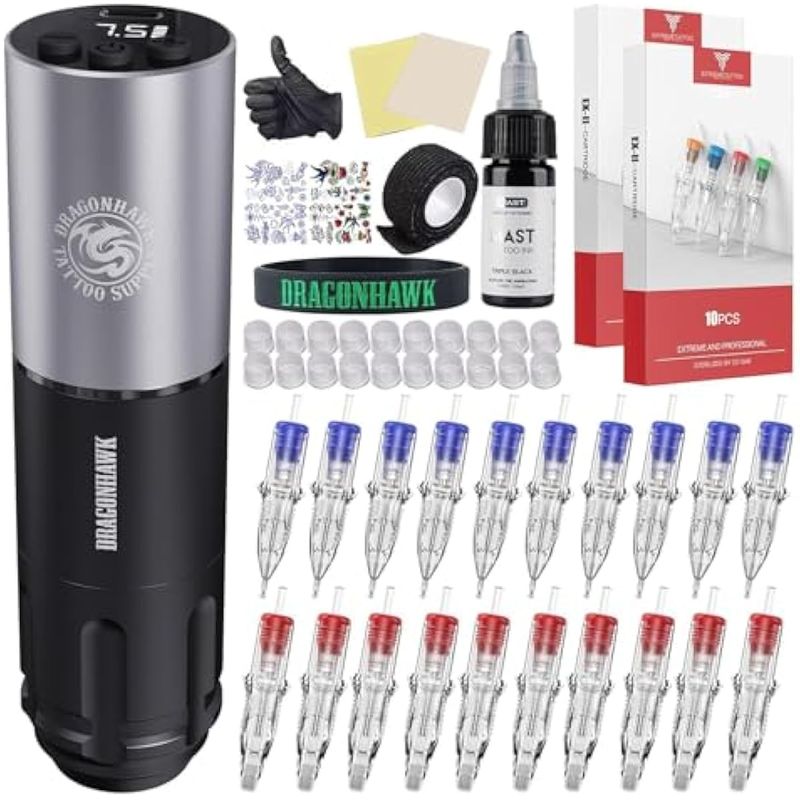 Dragonhawk Kit de tatuaje para principiantes, kit inalámbrico completo de máquina de bolígrafo de
