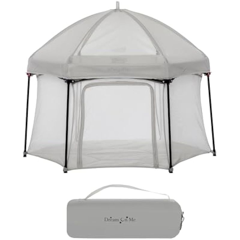 DREAM ON ME ONYX - JUEGO DE CORRALITO CON DOSEL, CORRALITO PARA BEBéS, PORTáTIL Y LIGERO, CORRALITO PARA BEBéS Y NIñOS PEQUEñOS, COLOR GRIS