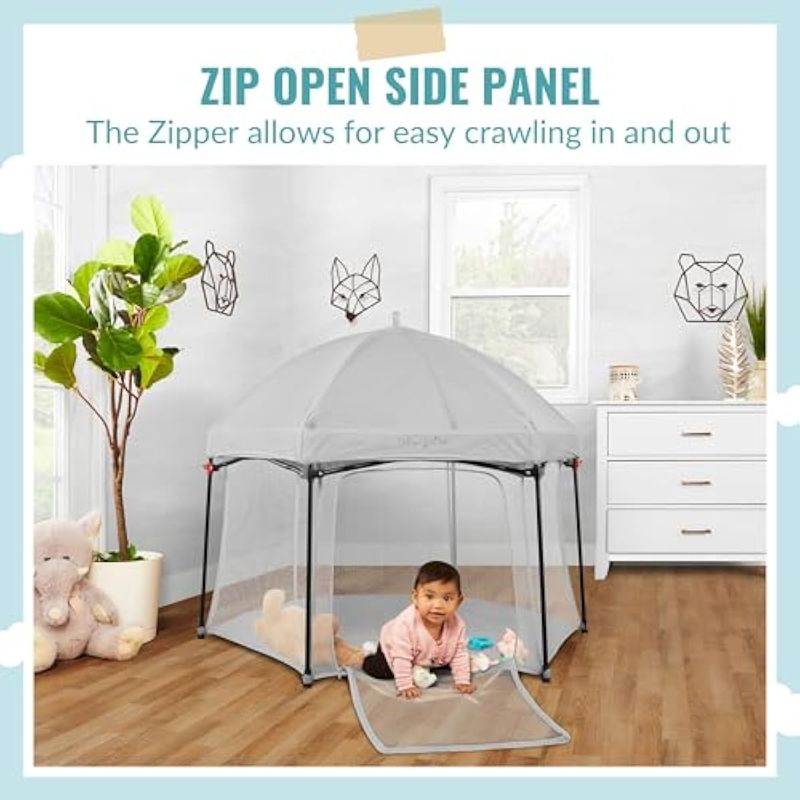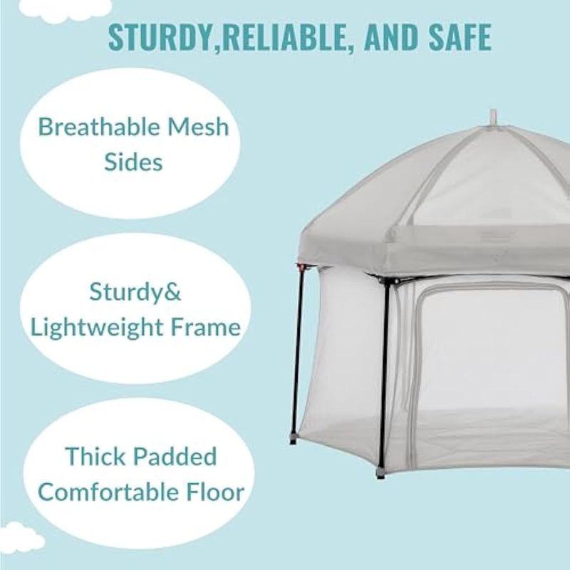 ALTA SEGURIDAD: El Onyx cumple con la norma ASTM f406-17. Su forma hexagonal lo hace estable, no se volcará ni colapsará. Está fabricado con material duradero de alta calidad. Las paredes de malla transparente permiten una fácil ventilación y visibilidad completa. El toldo extraíble bloquea el 98 de los dañinos rayos UVA y UVB