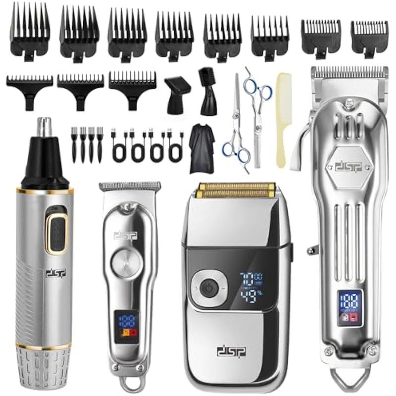 DSP Kit de peluquero profesional 4 en 1: cortadora de pelo inalámbrica, recortadora, afeitadora y