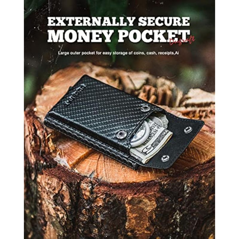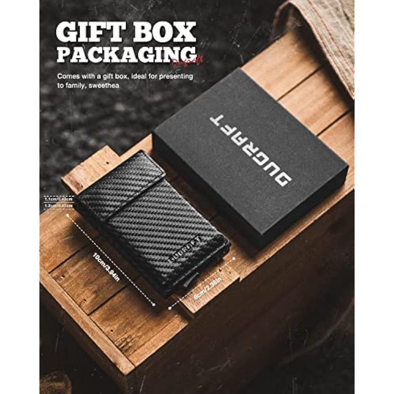 DUGRAFT CARTERA CON TARJETERO CON BOLSILLO DE SEGURIDAD DE GRAN CAPACIDAD, PARA HOMBRE, MODERNA, DELGADA, DE METAL, DE ALUMINIO, PARA MáS DE 10 TARJETAS, BLOQUEO RFID, FUNDA PARA TARJETAS DE CRéDITO CON CAJA DE REGALO, FIBRA DE CARBONO NEGRO, MINIMALISTA