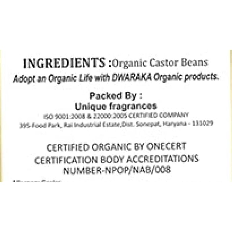 Dwaraka Aceite de ricino orgánico prensado en frío para el crecimiento del cabello, la piel y la