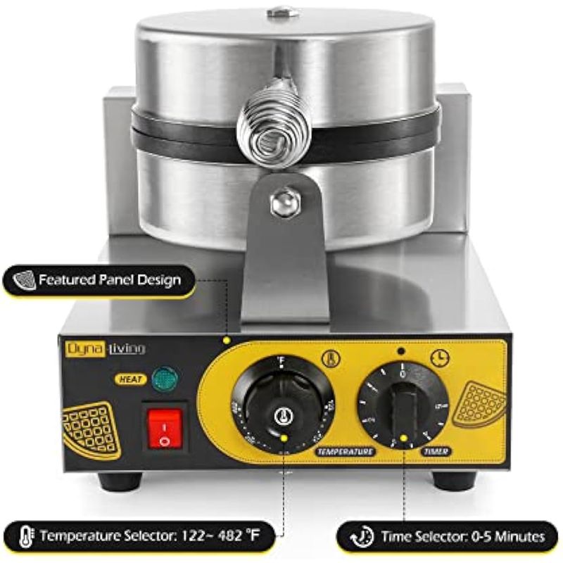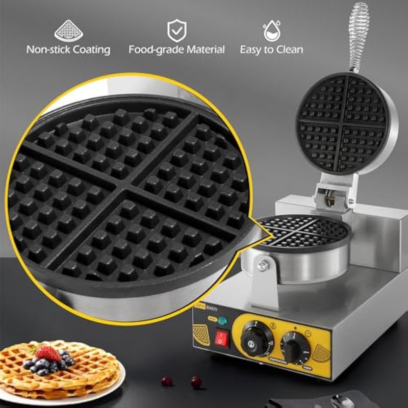Dyna-Living Máquina de gofres comercial eléctrica para gofres, antiadherente, para restaurante,
