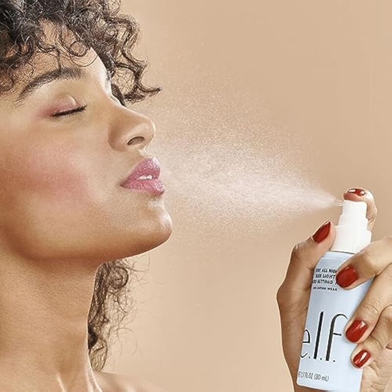 E.L.F. AEROSOL DE MICROAJUSTE Y REFRESCANTE DE LA PIEL CON LUZ AZUL PARA UN ACABADO MATE, REDUCE LA TRANSMISIóN, 2.7 ONZAS LíQUIDAS