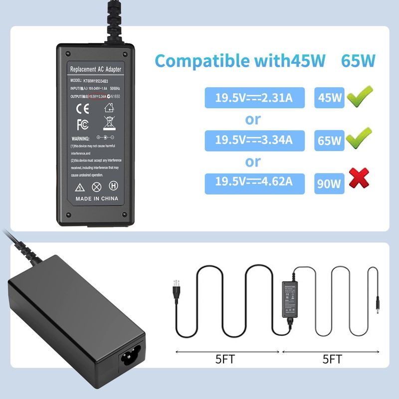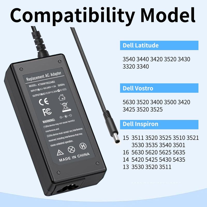 Easy&Fine 65.0 W Ac adaptador portátil cargador para Dell Latitude 3540 3440 3420 3520 3430 3320