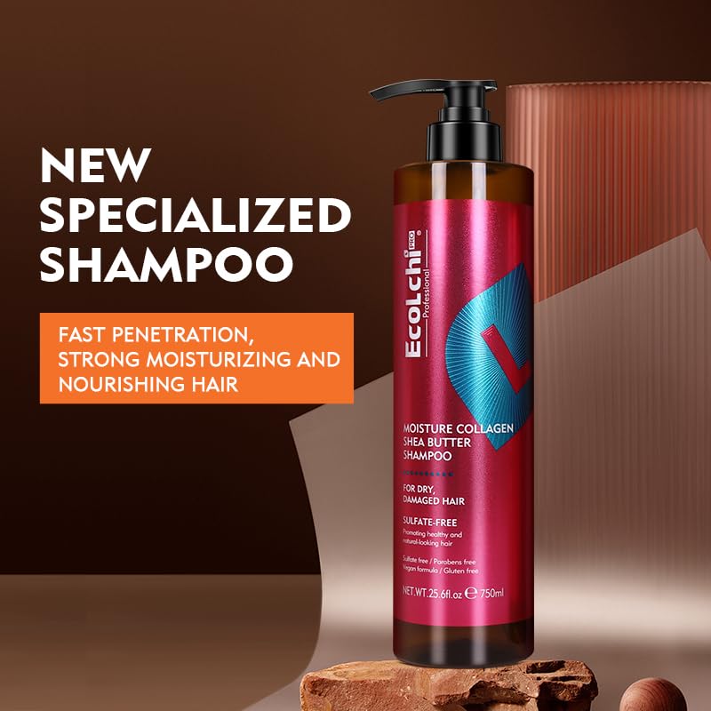 Ecolchi - Champú orgánico de colágeno para hamburguesas de karité, para reparación profunda, champú