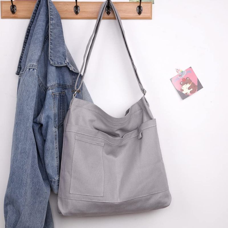 Economical Cotton Canvas Tote Bag,Women Hobo Shoulder Bag Crossbody Handbag with 3 External