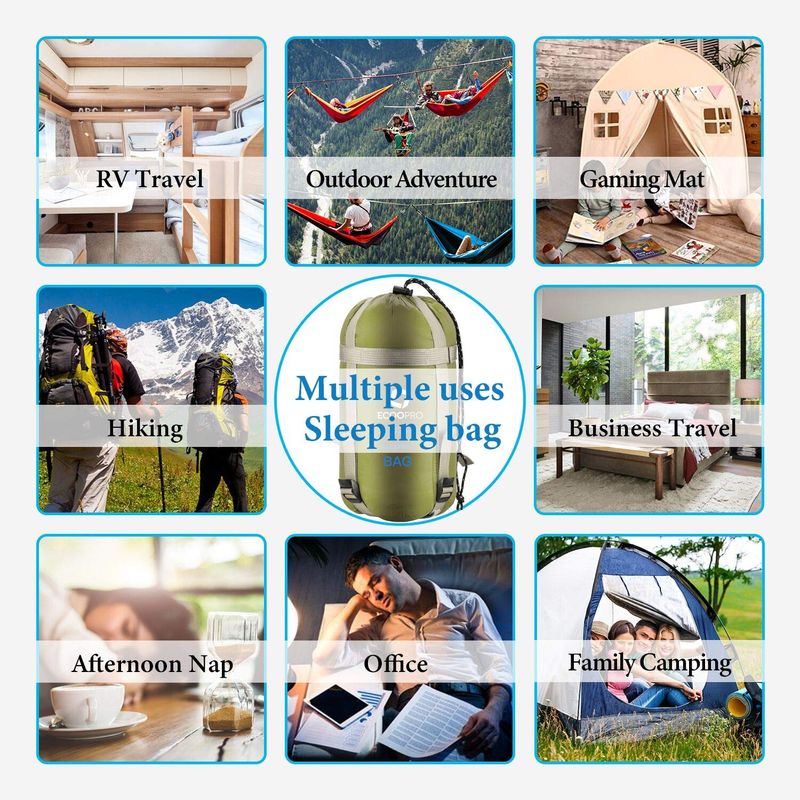 Versatilidad múltiple: puedes utilizar nuestro saco de dormir en condiciones meteorológicas múltiples sin la necesidad de un forro. Es un saco de dormir perfecto para viajes al aire libre, ir de camping, senderismo o de montaña, también funciona como edredón de camping.