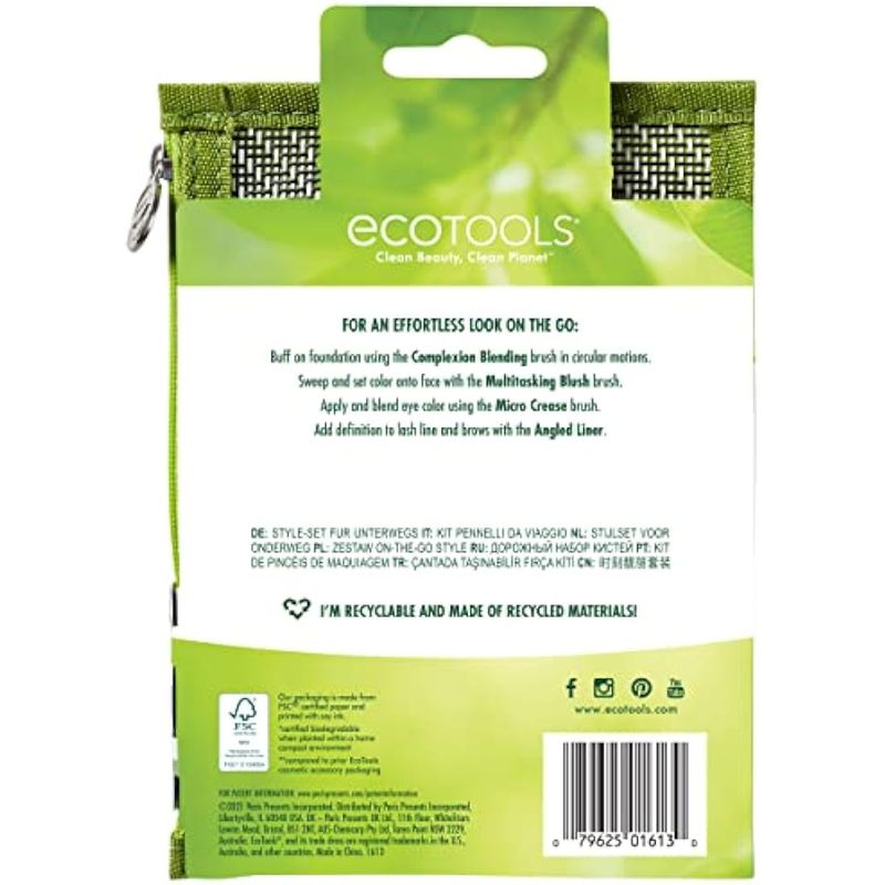 EcoTools Kit de brochas de maquillaje para llevar, juego de brochas aptas para viajes, prácticas