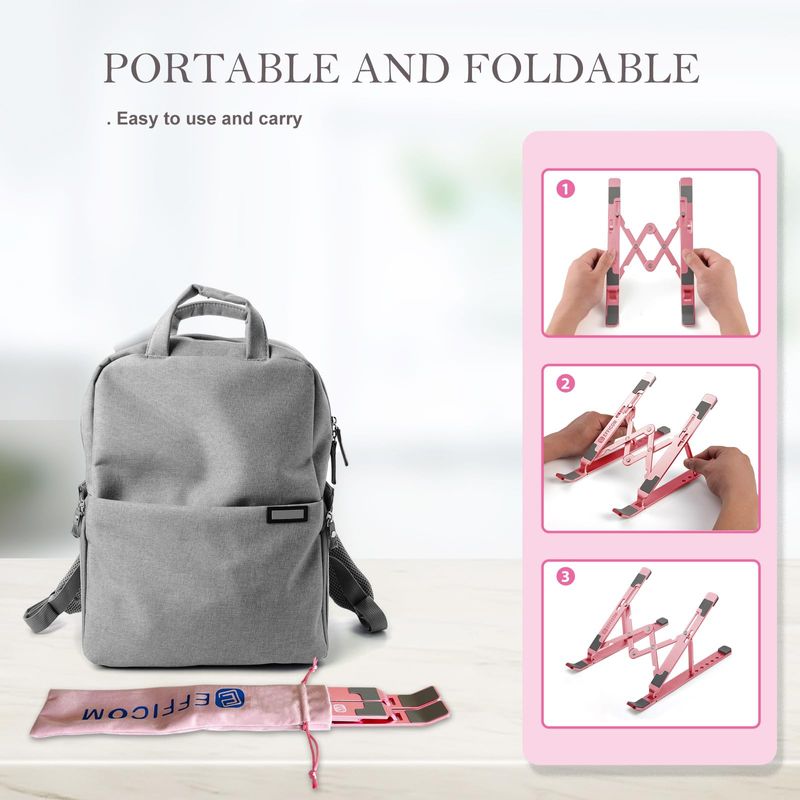 EFFICOM Soporte para computadora portátil para escritorio, ergonómico, ajustable y plegable, soporte