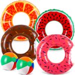Elcoho 6 piezas inflables de tubo de piscina, 4 anillos de natación con 2 bolas de playa de 30
