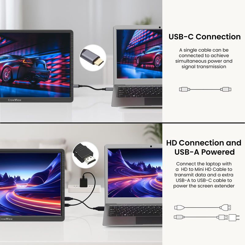 INFORMÁTICAMONITORESELECROW Extensor de pantalla para portátil de 14 pulgadas, 1080P FHD IPS Extensor de monitor dual