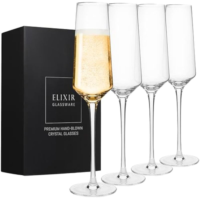 HOGARBAZARUTENSILIOS DE COCINAELIXIR GLASSWARE Copas de champán con clase, 8 onzas, juego de 4 elegantes copas de vino de flauta,
