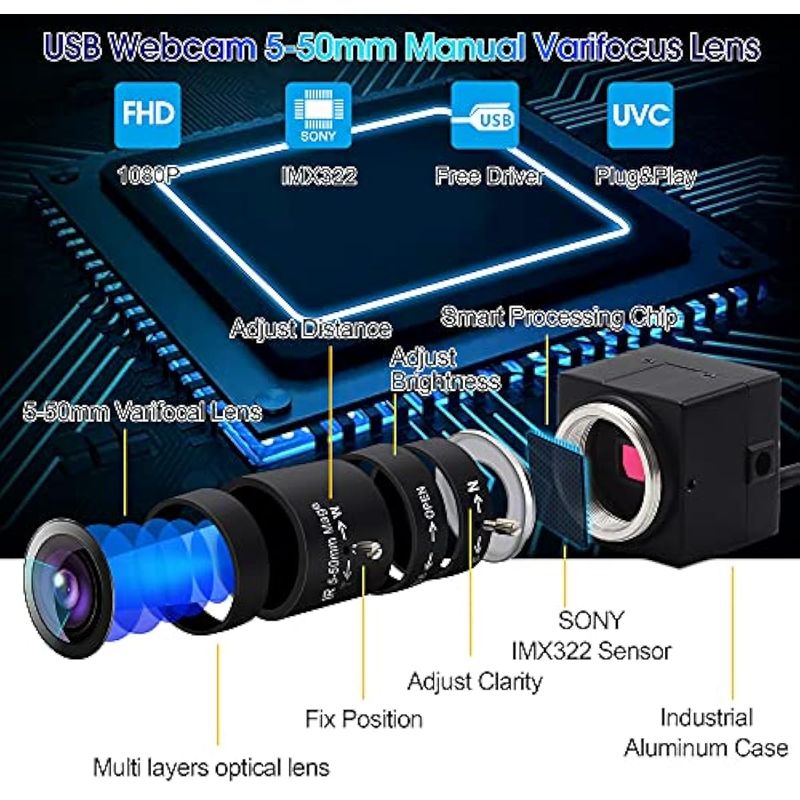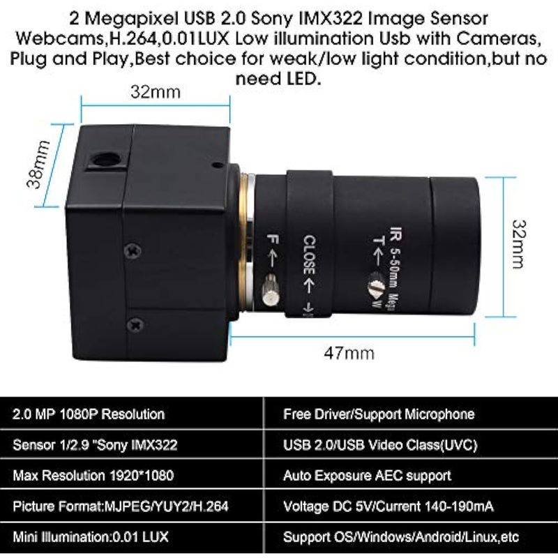 ELP 0.197-1.969 IN VARIFOCAL LENTE 1080P USB CáMARA CON H.264 ALTA DEFINICIóN SONY IMX323 WEBCAM PARA ANDROID LINUX WINDOWS VIDEO INDUSTRIAL