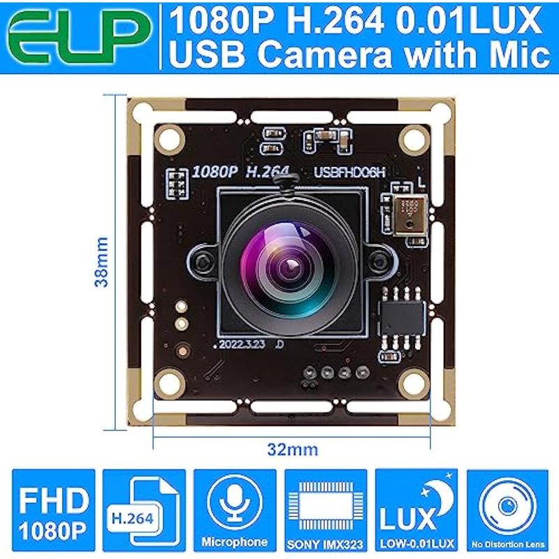 ELP SONY IMX323 SENSOR MINI MóDULO DE CáMARA USB DE áNGULO BAJO CON LENTE DE 100 GRADOS SIN DISTORSIóN HD 1080P 0.01LUX USB2.0 VIDEO WEBCAM BOARD UVC H.264 CáMARA DE PC PARA COMPUTADORA, PORTáTIL