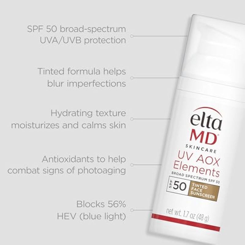 BELLEZA Y SALUDBELLEZA Y CUIDADO CORPORALCUIDADO DE LA PIELEltaMD UV Elements SPF 44 - Hidratante tintado para la cara con SPF, hidratante mineral tintado para