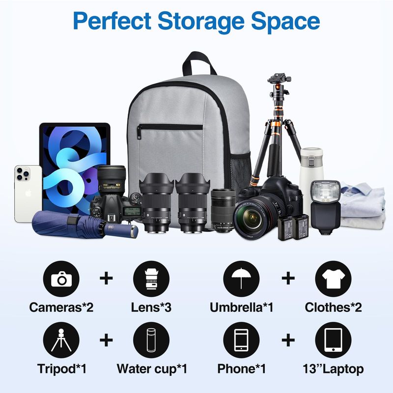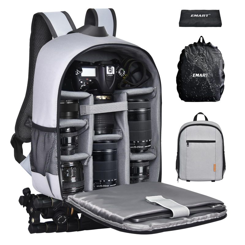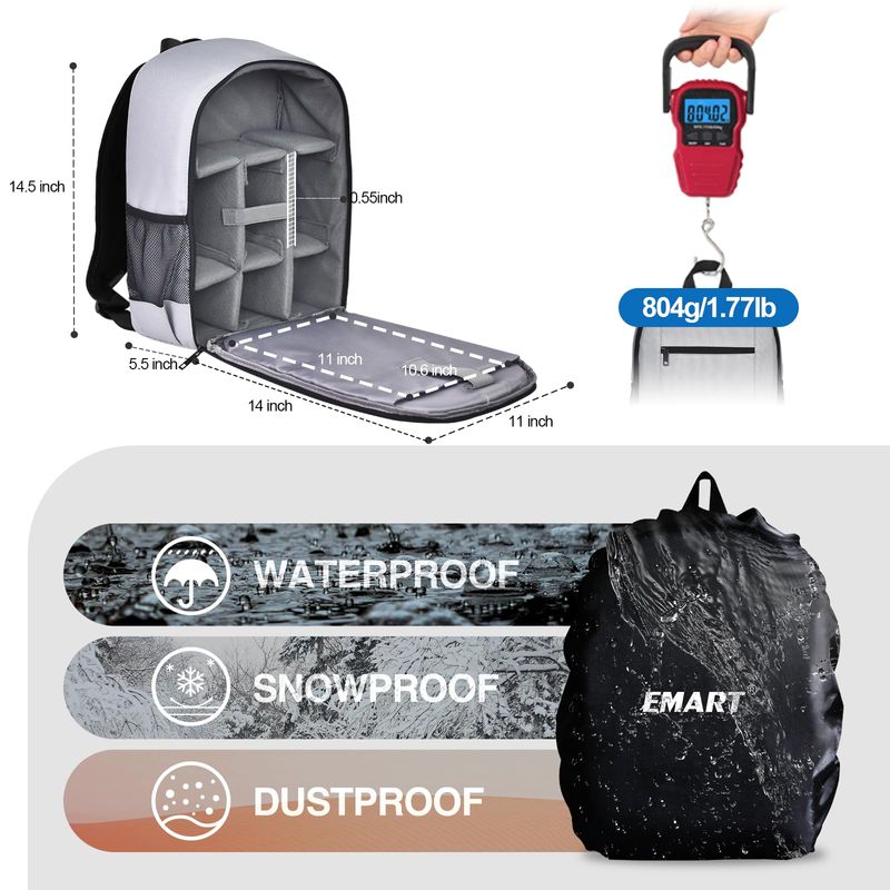 Uso de alto espacio: Dimensiones: 11.4 x 5.1 x 14.2 in, peso 1.8 lbs. La bolsa de cámara EMART se adapta a 1 cuerpo de cámara + 3 lentes + 1 flash + 2 baterías + iPad + lugar de trípode + otros accesorios, esta bolsa de cámara funciona con NikonCanonPanasonicSonyOlympusPentax.