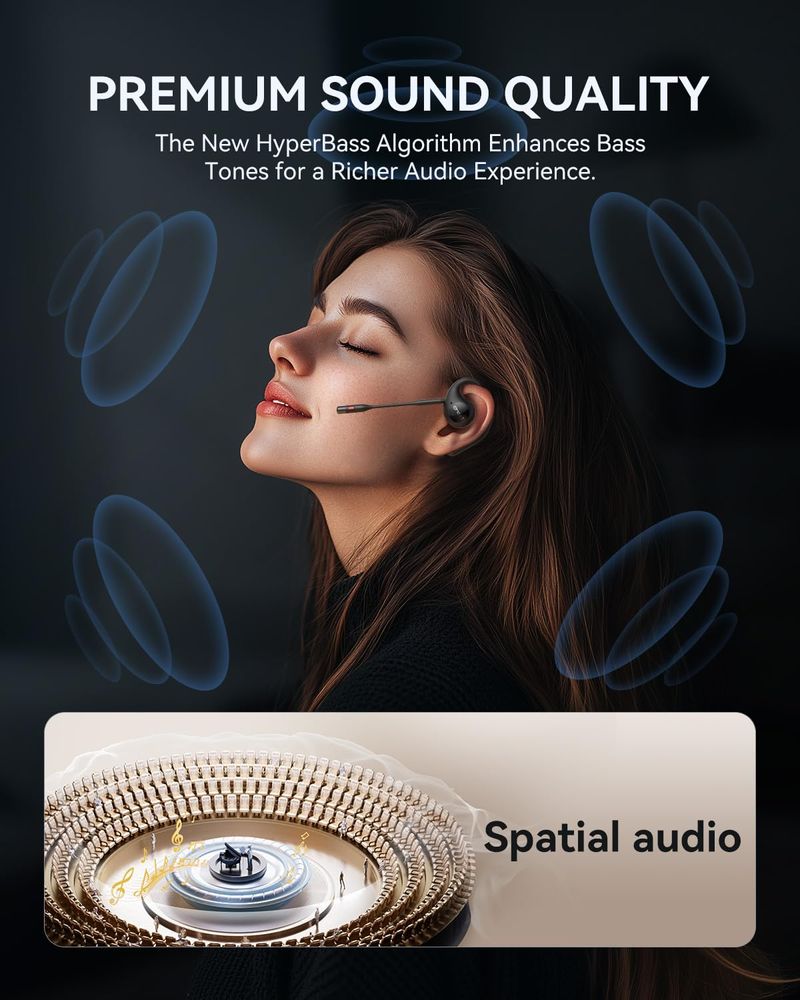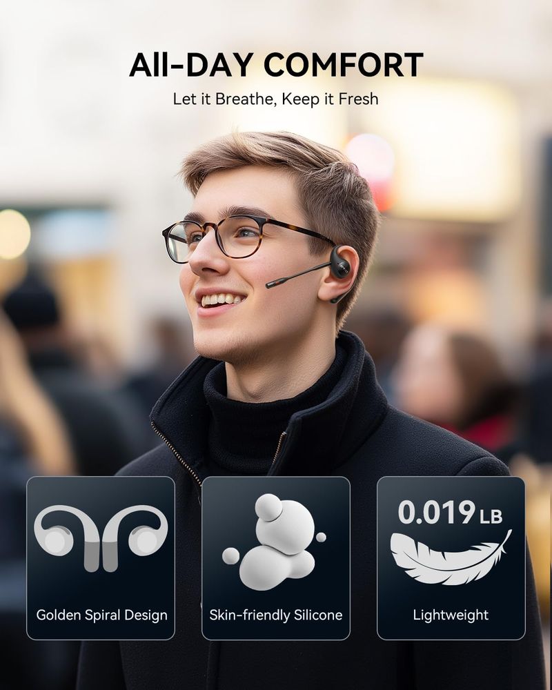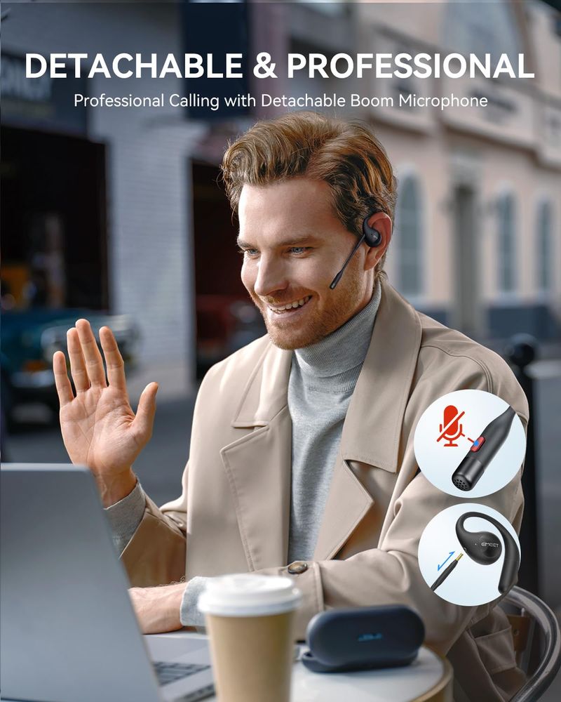 EMEET Airflow - Auriculares de oreja abierta con micrófono, certificado por zoom, auriculares