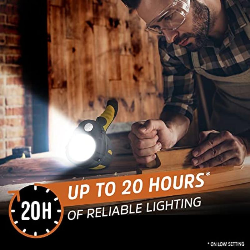 [Luz para cada trabajo]: la tecnología LED avanzada ofrece una luz brillante y uniforme para una variedad de trabajos. Una gran linterna de foco para el sitio de camping, lugar de trabajo, trabajos en interiores y exteriores, cortes de energía, emergencias y mucho más