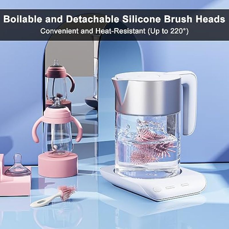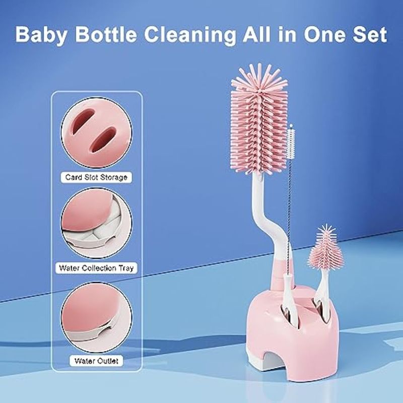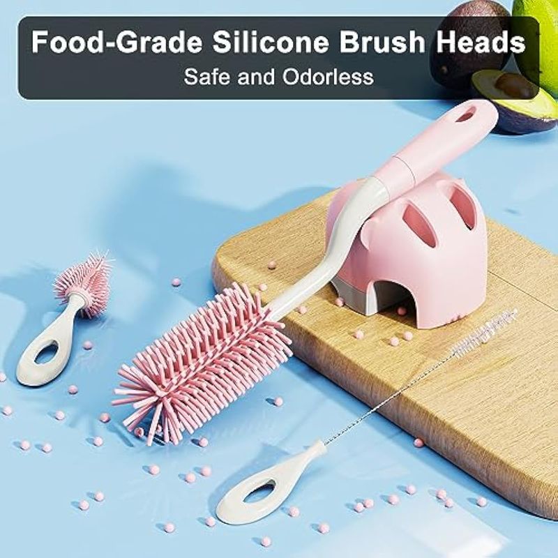 ePiiChua Juego de cepillos de silicona para botellas con soporte, juego de cepillos de limpieza de
